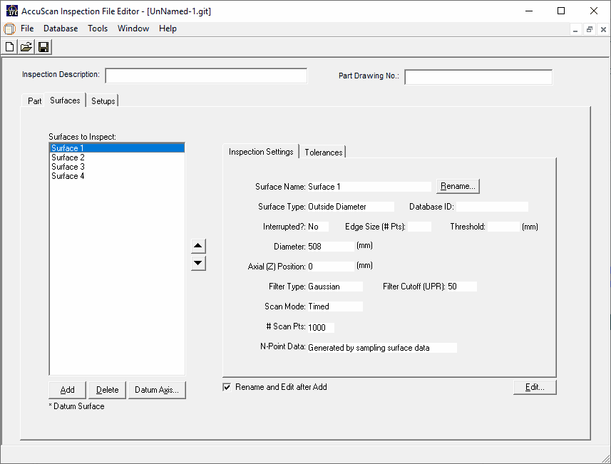 Use AccuScan Inspection File Editor to create reusable Inspection Templates. Program in English or Metric units, add tolerances, and more.